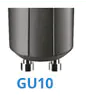 If you are looking for spotlights in your kitchen or living room, these lights will probably have a GU10 bulb socket. 'GU' indicates that it is a plug-in socket with a turning lock. You push the bulb into the fitting and then rotate the bulb until it is in place (same principle like the Bayonet socket).