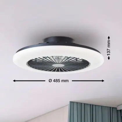 Brilliant Salerno Ceiling Fan Plastic Metal Black 36W 4700lm - 830-865 CCT+RGB | 485mm - Remote Control Dimmable
