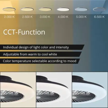 3. Tunable white: The white light can take any values in the listed Kelvin scale, for instance 2200K up to 6500K.