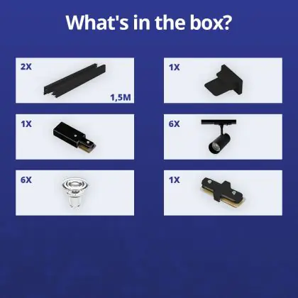 | Manufacturer Name | Complete Straight 3-meter 1-Phase Track Set Black incl. 6x Spot fixture + GU10 2700K 3W Dim – 2x 1.5 | |