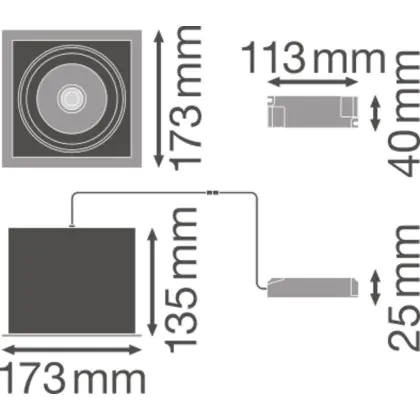 Ledvance LED Spot Square Tiltable Black-White 30W 2700lm 36D - 830 Warm White | Cutout 164mm
