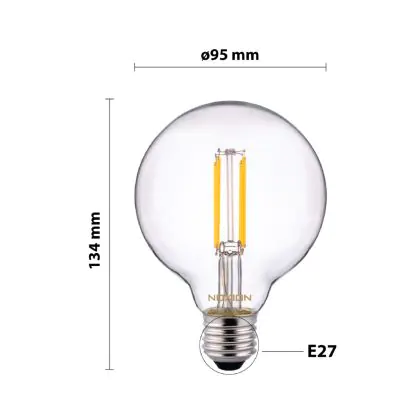 Noxion Lucent Filament LED E27 Globe Clear 7W 806lm - 827 Extra Warm White | Dimmable - Replaces 60W