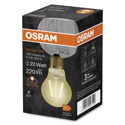 Osram Vintage 1906 LED E27 Pear Filament Gold 2.5W 220lm - 824 Extra Warm White | Replaces 25W