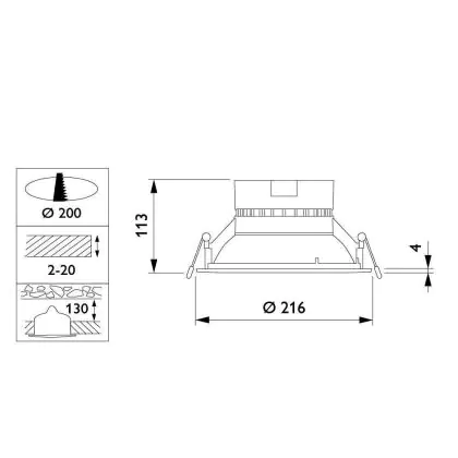 Cut out (mm) | 200 |