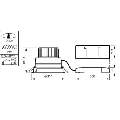 Philips LED Downlight LuxSpace Compact Low Height DN570B 52.8W 6200lm 80D - 830 Warm White | 214mm - Aluminium Reflector