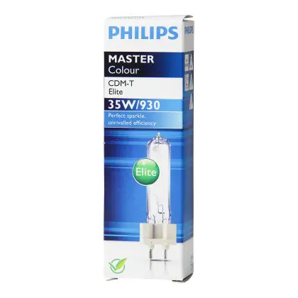 CDM-T Elite is a compact high pressure ceramic iodide discharge lamp with high luminous efficacy. These lamps are not dimmable. If you want a lamp with adjustable intensity, choose the Philips CDM-T Elite Light Boost! Philips CDM-T Elite 35W 930 G12 have a G12 base type, which allows them to fit perfectly in your old fixtures. The average lifespan of Philips CDM-T Elite 35W 930 G12 is 15000 hours, which corresponds to approximately 4 years of use.