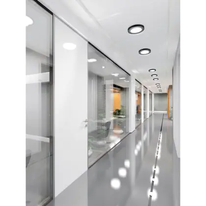 A fixture with a tiltable design makes it possible to direct the lighting specifically at an object or surface. This can play a particularly important role in shops (putting a new collection in the spotlight) or galleries (accentuating works of art). It can also influence the purchasing behaviour or interpretation of visitors.